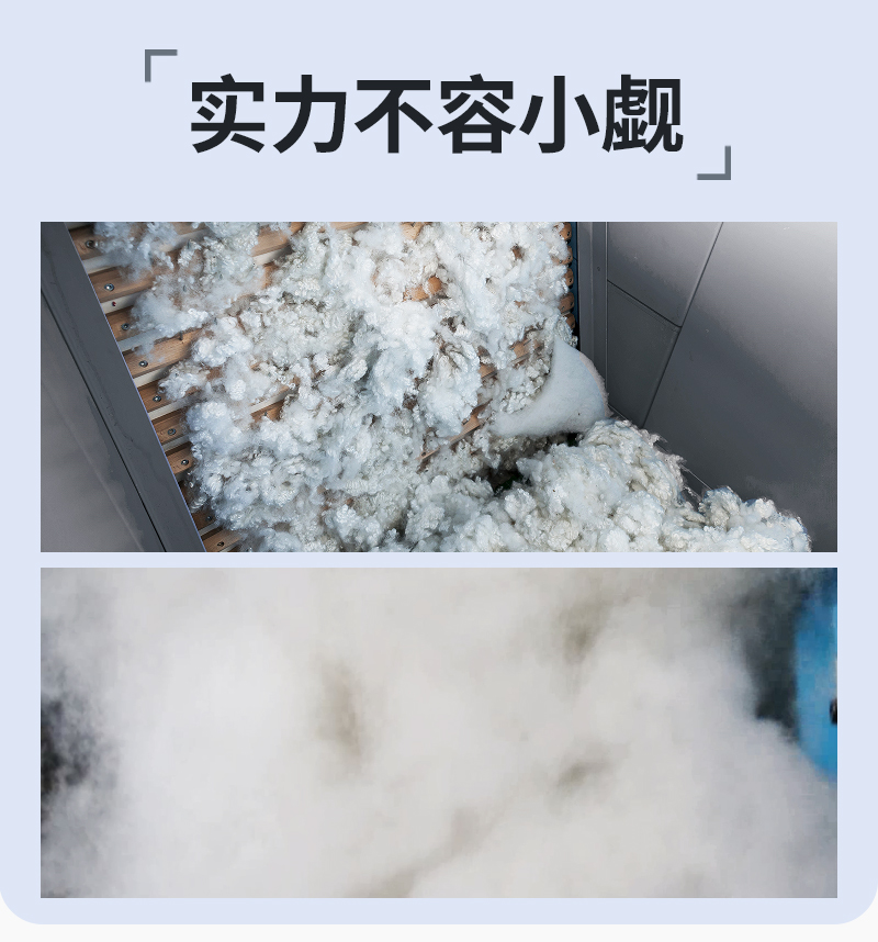 2.利用大小不同方向的滾齒運轉產生的拉力對各種短纖維(羊毛、聚酯纖維PP棉)進行梳理蓬松,開松率達99%以上;