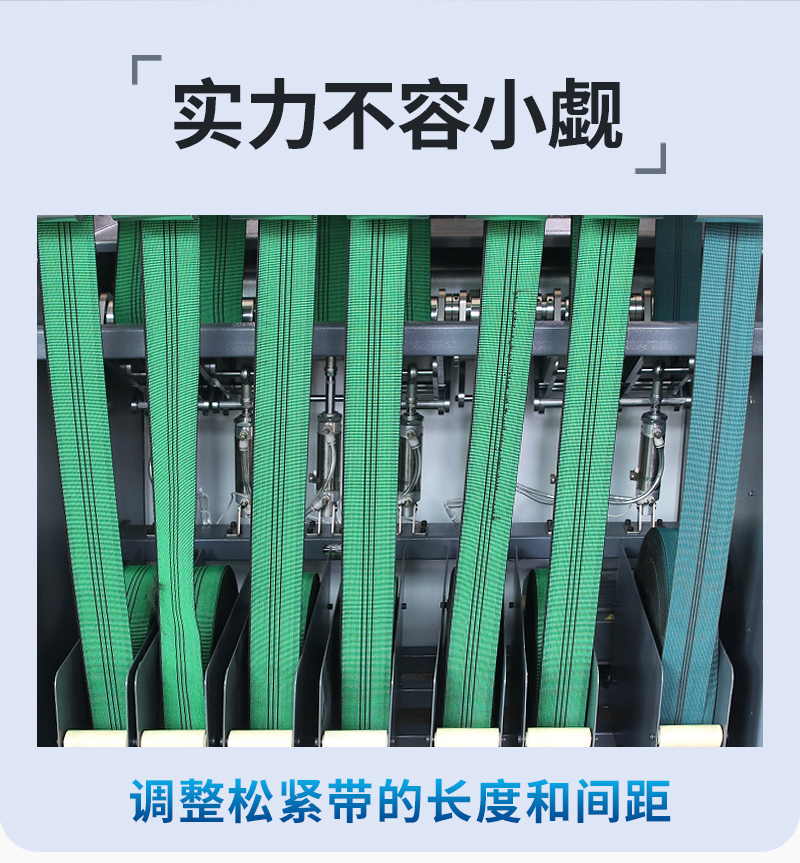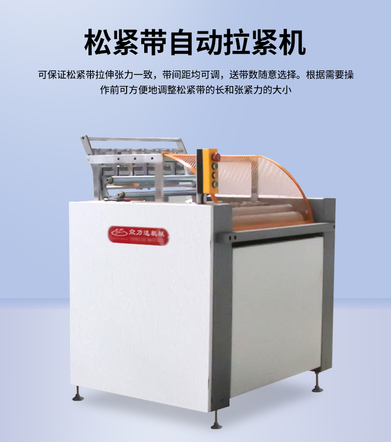 可保證松緊帶拉伸張力一致,帶間距均可調(diào),送帶數(shù)隨意選擇。根據(jù)需要操作前可方便地調(diào)整松緊帶的長(zhǎng)度和張緊力的大小。