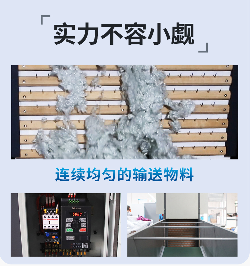 2.該設(shè)備主要用于家紡廠及沙發(fā)廠對(duì)國(guó)產(chǎn)或進(jìn)口PP棉原料的開松。