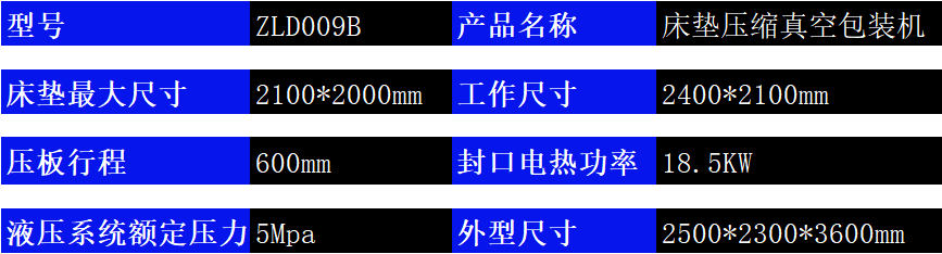 1.床墊真空壓縮包裝機(jī)主要針對(duì)海綿床墊以及大型沙發(fā)坐墊靠包進(jìn)行真空壓縮并且封口的設(shè)備。2.該機(jī)器采用液壓動(dòng)力,單邊封口,對(duì)于大型床墊的真空壓縮打包具有良好的效果,極大地減少包裝體積,減少運(yùn)輸成本。
