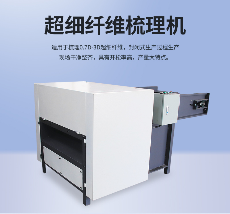 1.超細(xì)纖維梳理機(jī),整機(jī)采用全封閉式,外形整齊美觀大方,自帶保護(hù)裝置,操作簡單安全可靠,吊運(yùn)安裝方便。