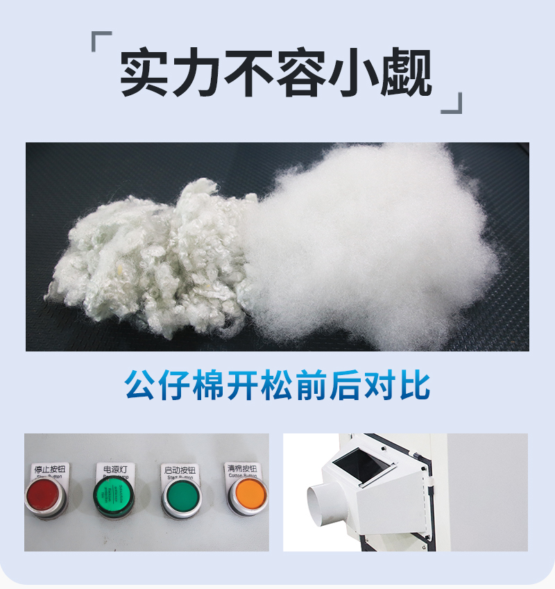 3.該設(shè)備主要用于家紡廠及沙發(fā)廠對國產(chǎn)或進(jìn)口PP棉原料的開松。