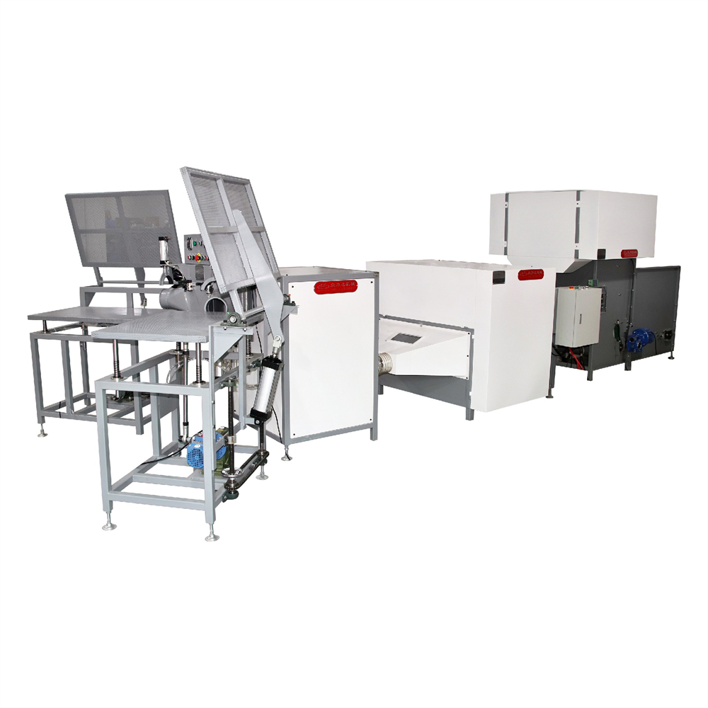 1.本生產線主要適用于沙發(fā)及床上用品生產廠中各種短纖維如(公仔棉、羊毛等)的梳理并填充工序,開松率達99%,纖維經梳理后可達到非常均勻蓬松的效果,2.填充機上裝有時間電子控制裝置,并配有兩個填充口,可以精控制短纖維的填充量,誤差為±10%左右。3.本機自帶過載保護裝置及急停開關,安全可靠。4.本機配有拍平工作填充臺,使填充工序更加快速,填充后枕頭及靠墊平整美觀。